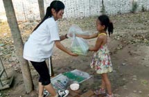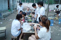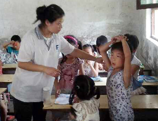 志愿者宋文靜是付里莊小學(xué)手語(yǔ)老師,是團(tuán)隊(duì)隊(duì)員和孩子們公認(rèn)的富有童趣的一小老師。她經(jīng)常陪孩子們做游戲,陪他們看哆啦A夢(mèng)。但就是這樣一位老師,上了課堂卻像換了個(gè)人似的,非常嚴(yán)厲。志愿者王蒙苗是付里莊小學(xué)口才勵(lì)志課老師。課堂上,她認(rèn)真教學(xué),課堂下用勵(lì)志故事激勵(lì)孩子們努力學(xué)習(xí)。因?yàn)榻?jīng)常照顧生病的孩子,孩子們認(rèn)為她最有愛的一個(gè)老師。志愿者孔令陵是后勤人員之一及封丘支教教務(wù)主任。她每天都會(huì)在五點(diǎn)去最近的商店買菜,然后摘菜、洗菜,做整個(gè)團(tuán)隊(duì)和部分孩子的飯菜,保障全隊(duì)生活