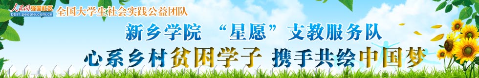 “星愿”義務(wù)支教服務(wù)隊(duì)于2009年成立,現(xiàn)有支教志愿者120余名。除多次開展暑期社會(huì)實(shí)踐支教活動(dòng)外,在校期間他們還堅(jiān)持每周二下午赴貧困小學(xué)義務(wù)支教活動(dòng)。五年來(lái),他們參與支教的次數(shù)達(dá)100余次,9000余小時(shí)課時(shí)。他們與新鄉(xiāng)市紅旗區(qū)平原小學(xué)、封丘縣潘店鎮(zhèn)老莊小學(xué)建立了長(zhǎng)期幫扶關(guān)系,還在延津縣榆林鄉(xiāng)大榆林小學(xué)、夾堤小學(xué)建立了愛心支教服務(wù)基地。