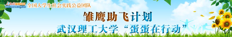 武漢理工大學“蛋蛋在行動”成立于2011年12月,是一支致力于開展包括支教在內的公益活動,援助山區(qū)貧困學生的公益團隊,目前擁有成員89人。2年多來,舉辦的活動有暑期支教、蛋蛋公益文化周、暖冬行動、聯(lián)合余區(qū)六院青協(xié)為胡夢婷募捐、愛心義賣等活動,吸引廣大師生參與,累計覆蓋人數(shù)超過一千人,募集款項18738.42元、物品五千余件。