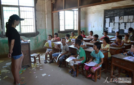 帶著義賣籌得的資金,織夢隊28人來到金華蘇孟鄉(xiāng)中學進行兩周的義務支教。在教授語文、數(shù)學、英語、物理等常規(guī)課程的同時,也開設了各類特色課堂,如紀念抗戰(zhàn)勝利70周年紅色系列知識、國學文化、交通安全等。對于許多實踐隊員來說,這是人生中第一次站上講臺,隊長方圣翔感慨說“平時看老師講課不覺得怎么樣,凡事只有自己體驗過了才知道有多困難。以后,我要多結(jié)合老師給自己講課的經(jīng)歷,多參考別人的課堂,讓自己的課堂也能變得生動有趣!