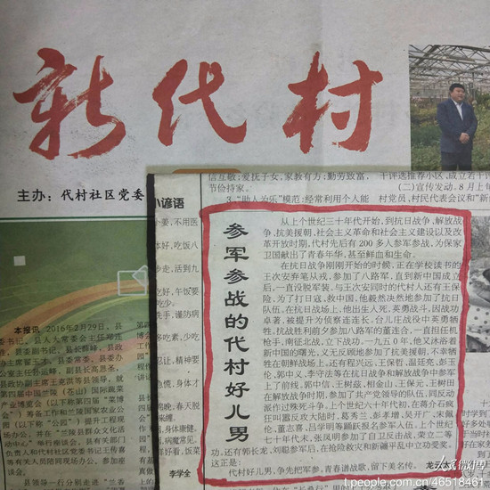 前后200多人參軍參戰(zhàn),用青春譜寫戰(zhàn)歌,用奉獻報效祖國。這是代村人的驕傲,更是我們國家的驕傲。