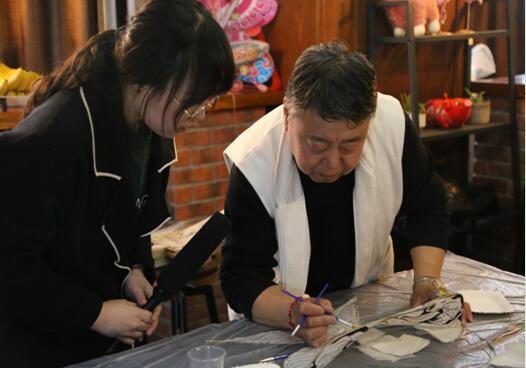 肖靜在活動(dòng)現(xiàn)場與非遺愛好者共同制作毛猴