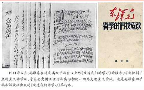 1938年10月,毛澤東在黨的擴(kuò)大的六屆六中全會上,明確提出“馬克思主義的中國化”的問題。會后,黨內(nèi)開展了馬克思主義理論學(xué)習(xí)運(yùn)動,但是主觀主義影響依然很大,給中國革命帶來嚴(yán)重威脅。1941年春天打退國民黨第二次反共高潮以后,從3月開始,以毛澤東同志為代表的中國共產(chǎn)黨人連續(xù)采取了一些重要措施來解決理論聯(lián)系中國社會和革命實(shí)際的問題。5月,毛澤東作《改造我們的學(xué)習(xí)》報(bào)告;9月,中央召開政治局?jǐn)U大會議,黨的高級干部學(xué)習(xí)和研究黨的歷史,總結(jié)黨的歷史經(jīng)驗(yàn),以求從政治路線上分清是非。事實(shí)充分證明,中國革命的危機(jī)并沒有過去,不經(jīng)歷一場系統(tǒng)的、深刻的、全面的整風(fēng)運(yùn)動,不從思想根源上解決錯誤路線問題,中國革命就沒有光明的未來。