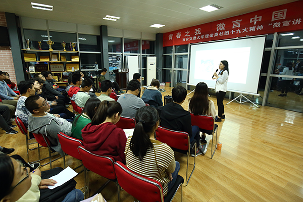 錄制前的電話初采時,聽聞李婧竟是比記者僅大一歲的博士生,我訝異不止。清脆活潑的聲音,大方清晰的談吐,正是一場場宣講留在她身上的印記,也帶著遠(yuǎn)遠(yuǎn)超出她這個年紀(jì)的穩(wěn)重和堅定。從2017年作為第一批宣講人加入西安交通大學(xué)學(xué)生微宣講團開始,從山村小學(xué)到重點高校,從工廠車間到領(lǐng)軍企業(yè),從邊防軍營到繁華都市,李婧的足跡遍布22個省(市、自治區(qū)),參與宣講工作。