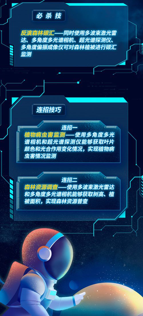 “森林碳匯監(jiān)測需要有高精度的植被數(shù)據(jù)作為支撐,為了達到這一要求,研制團隊創(chuàng)新性地將天基測繪‘激光雷達+光學相機’為代表的主被動聯(lián)合觀測手段應(yīng)用到森林監(jiān)測中! 航天科技集團五院專家表示,通過衛(wèi)星獲取高精度數(shù)據(jù),對激光雷達和多光譜相機要求很高。衛(wèi)星研制團隊基于現(xiàn)有技術(shù)基礎(chǔ),設(shè)計出了天基森林碳匯監(jiān)測的“絕佳方案”:以激光雷達波束翻倍、重頻提升逾30倍,配置5個多光譜相機進行5角度綜合觀測。這種主被動聯(lián)合觀測模式,不僅充分發(fā)揮了激光雷達和多光譜相機的優(yōu)勢,同時還能利用激光校準多光譜相機精度,充分滿足了森林碳匯監(jiān)測的精度需求。