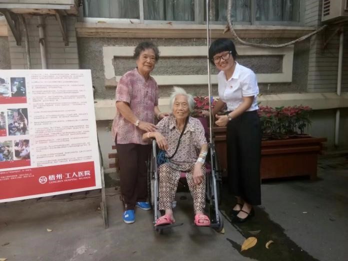 “孩子,我不能在福利院住了,我沒有地方去了!秉S奶奶抹著眼淚說。原來黃奶奶年事已高,需要親屬作為擔保人與社會福利院簽訂入院協(xié)議才能入住。但黃奶奶與孩子的關(guān)系并不好——在梧州生活的大兒子不愿照顧黃奶奶,也不愿為黃奶奶簽訂入院協(xié)議;小兒子則遠在上海,常年不回梧州。因此,黃奶奶無法辦理合法合規(guī)的社會福利院入住手續(xù)。